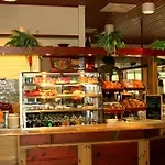 מסעדה מזמין אורחים לארוחת בוקר בופה.